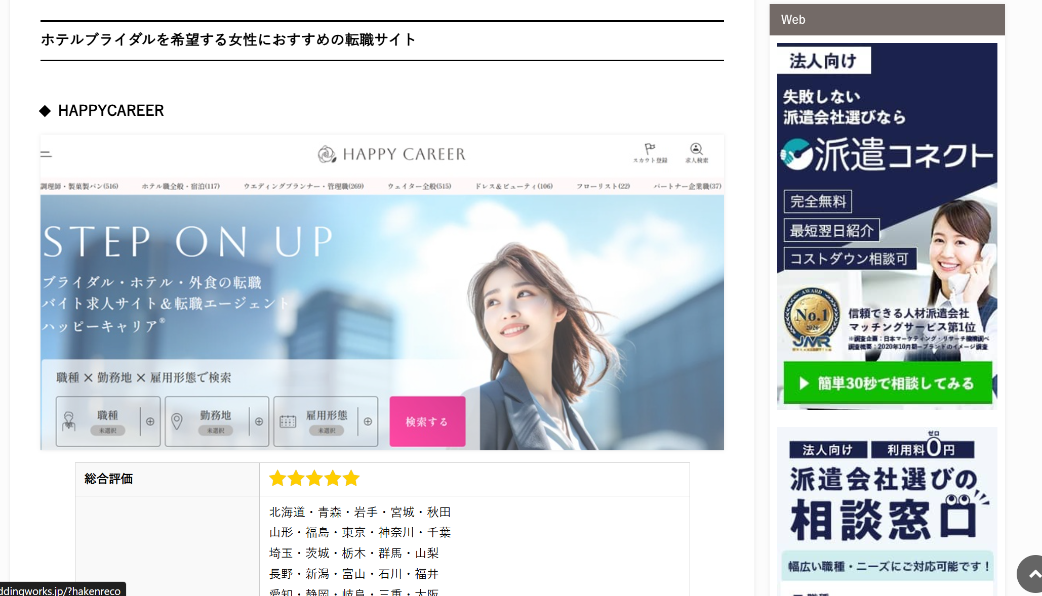 「HAPPY CAREER」は、ビジコネット株式会社が運営する、 おすすめの転職支援サービスを紹介するメディア「CareeReco」でおすすめ転職サイトとして紹介されました。 ▼ 「CareeReco」 記事はこちら 女性向けおすすめ転職サイト|活用する際の注意点やポイントも徹底解説→クリック